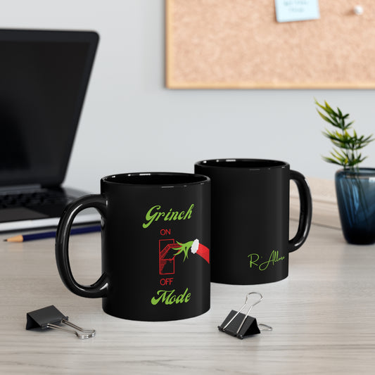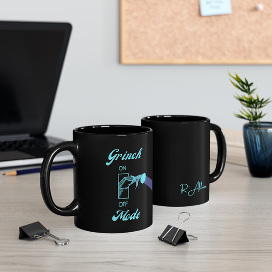 11oz Blue Grinch Mode On Black Ceramic Mug